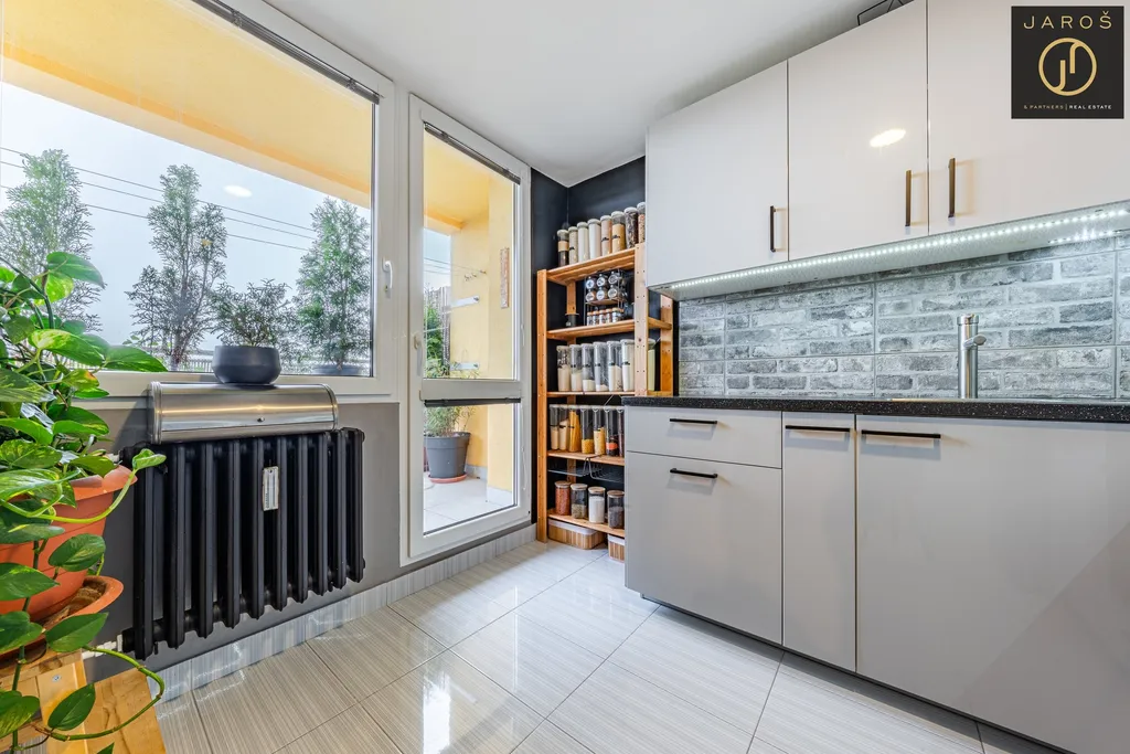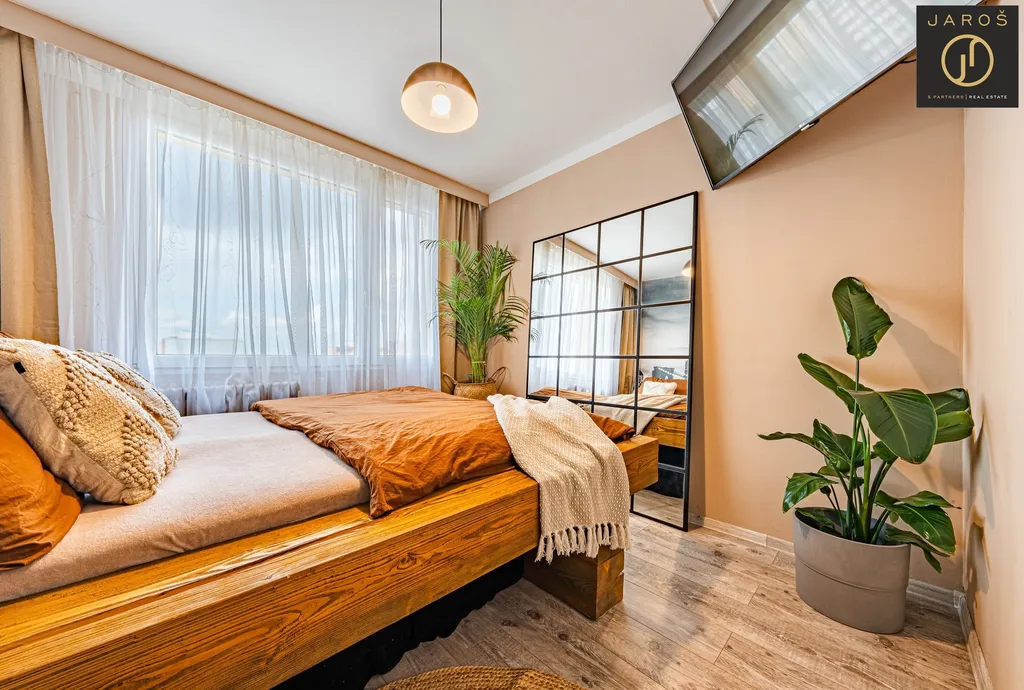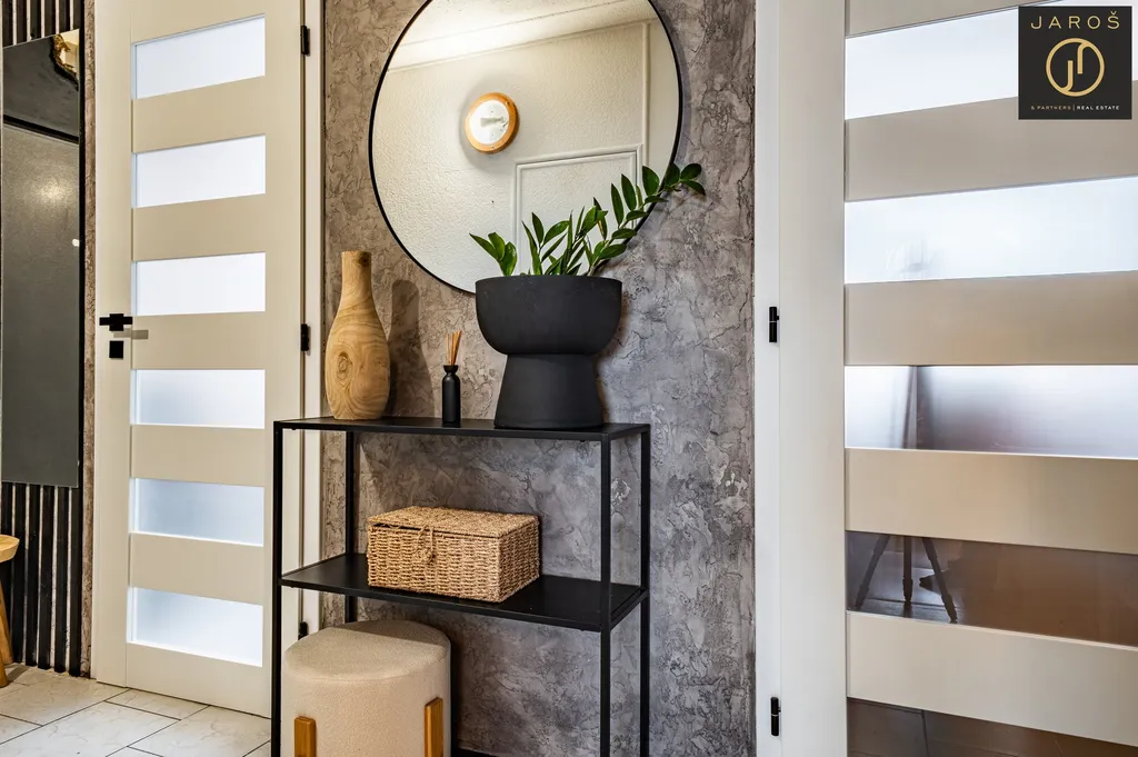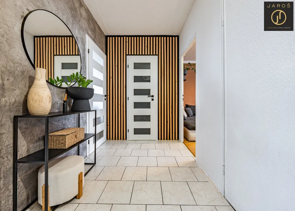 Byt působí velmi vzdušně a světlým dojmem díky dobré orientaci a dostatku denního světla. Dispozice nabízí praktické rozdělení místností, včetně samostatné toalety a šatny, která poskytuje dostatek úložného prostoru. Další úložnou možností je komora umístěná přímo na chodbě domu, což zvyšuje komfort bydlení.