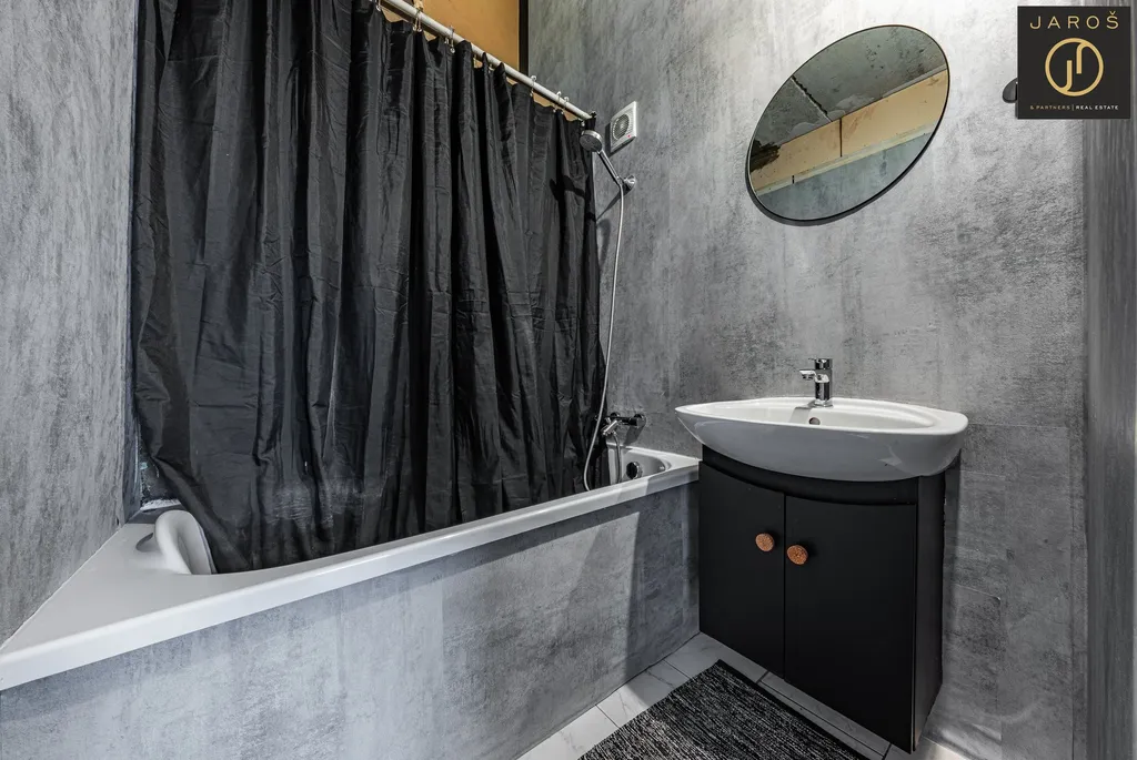 Koupelna je ve fázi započaté rekonstrukce, což novému majiteli dává skvělou příležitost dokončit ji dle vlastních představ a vkusu. Byt je tak ideální jak pro vlastní bydlení, tak i jako investiční příležitost.