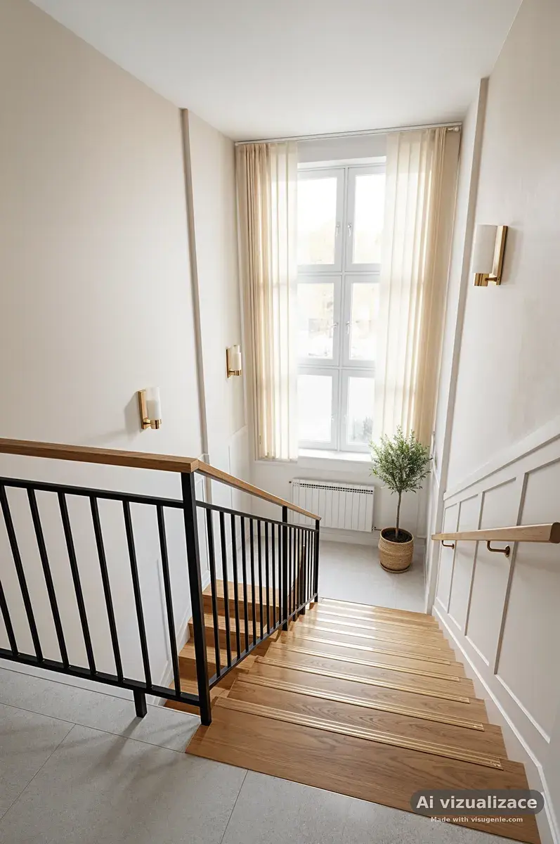 V patře se nachází 4 pokoje, z nichž dva mají vlastní vstup na balkon. Dále koupelna, samostatné WC, šatna.