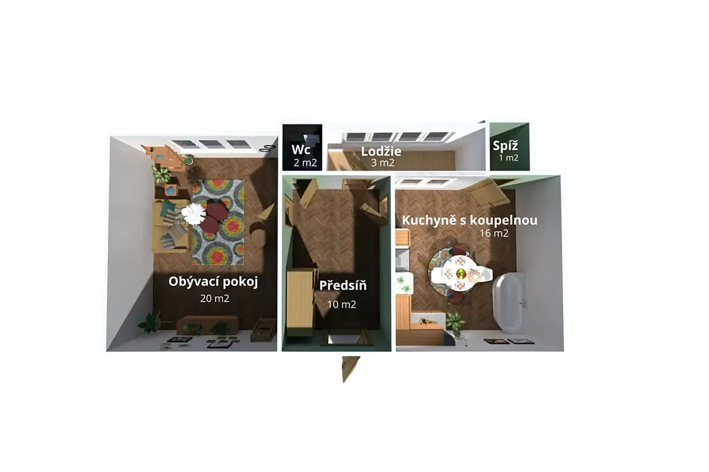 Velkou výhodou je prostorná lodžie, kterou lze zajímavě využít například jako rozšíření obytného prostoru.