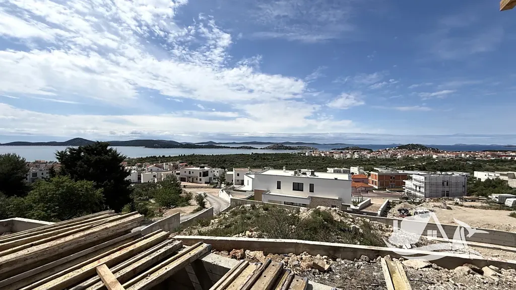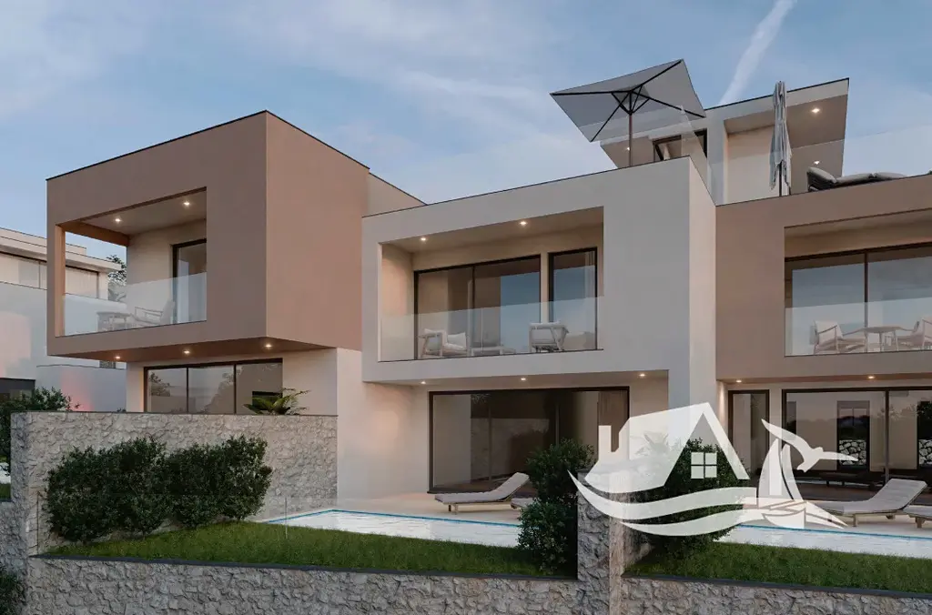 V nové a klidné rezidenční části města Vodice vzniká tento moderní řadový dům, který spojuje současný design, vysoký standard provedení a nádherné výhledy na moře. Nemovitost je situována na mírném vyvýšení, pouhých 800 metrů od pláže a přibližně 1200 metrů od centra města, což přináší ideální kombinaci soukromí a dostupnosti veškeré občanské vybavenosti.