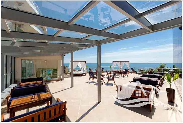 Komplex, ve kterém se apartmán nachází, poskytuje široké zázemí pro pohodlí a relaxaci. Dva venkovní bazény, fitness, herna, konferenční místnost, dětské hřiště a klidové zóny s lehátky a slunečníky. Před domem je parkoviště a samozřejmostí je výtah. Pláž je doslova před domem – na jemném písku a s vodními atrakcemi pro děti.