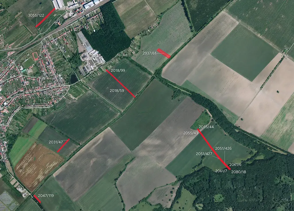 -> parc. č. 431/44, 435/22, 439/21, 2018/59, 2018/99, 2031/47, 2047/119, 2051/426, 2051/427, 2055/43, 2055/44, 2061/6, 2061/7, 2062/48, 2062/49, 2080/18, 2080/19, 2152/18, 2153/50, 2637/105, 3055/122 (LV 364)