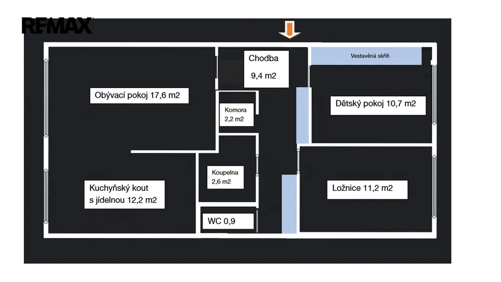 Velkou výhodou bytu je dostatek úložného prostoru – přímo v bytě najdete praktickou komoru (2,2m2) a další komora je k dispozici na patře (1m2).