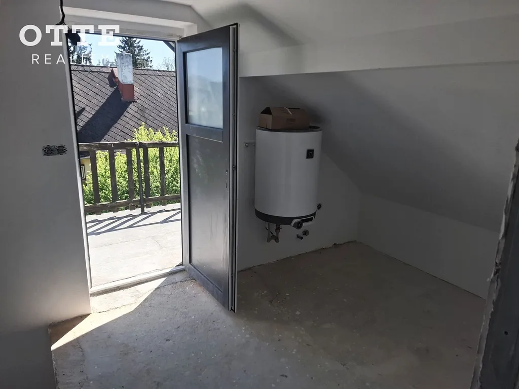 Budova má dvě nadzemní podlaží a je plně podsklepená. V přízemí se nachází předsíň, obývací pokoj s kuchyňským koutem, komora a koupelna, kde je plánován sprchový kout a toaleta. V podkroví je ložnice, šatna, komora a vstup na terasu, která má výměru cca 6 m2. Objekt je podsklepený, což nabízí dostatek úložného prostoru. Parkování je možné garáži v suterénu domu.