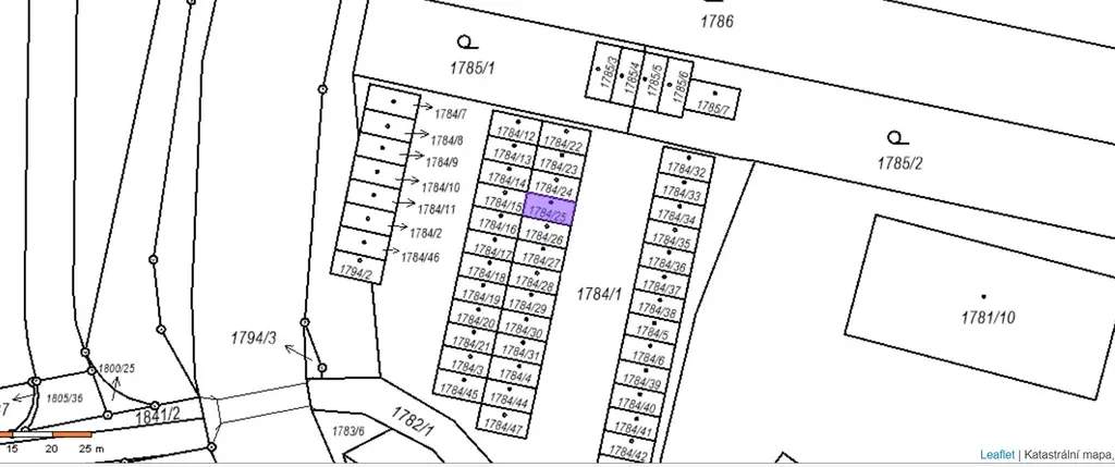 Garáž o velikosti 19 m² je spolu s pozemkem v osobním vlastnictví jednoho majitele. Příjezdová komunikace je ve vlastnictví města.