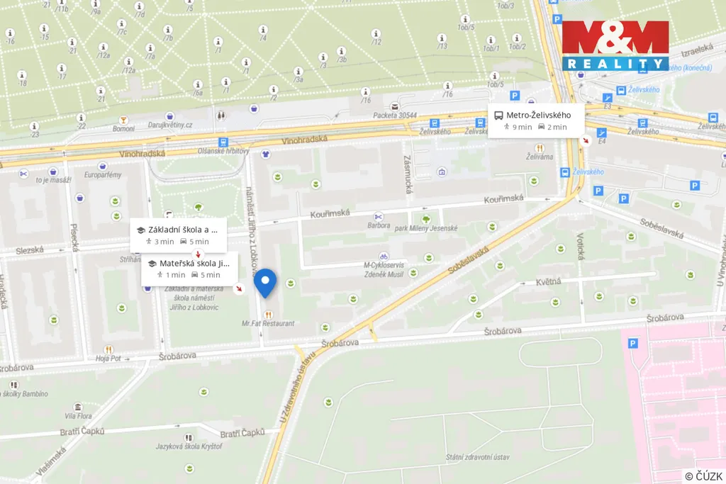 Okolí nabízí špičkovou vybavenost. V bezprostřední blízkosti jsou zastávky tramvají Olšanské hřbitovy a stanice metra i tramvají Želivského či Flora. V docházkové vzdálenosti naleznete OC Flora, vyhlášené restaurace i dostatek parků.