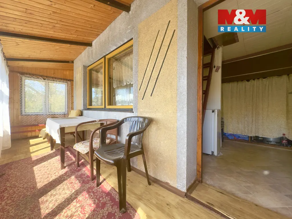 Nabízíme Vám ideální 1/2 podílu chaty a pozemku v k.ú. Černýš. Chata se skládá ze dvou místností, sprchy a wc. Je napojena na veřejný vodovod a elektřinu. Teplou vodu zajišťuje bojler a vytápění je zajištěno krbovými kamny. Chata je v dobrém a suchém stavu, z kombinovaného zdiva. Na podlahách je PVC a koberce. Pozemek má rozlohu 141 m². V blízkém okolí je skála, ze které je krásný výhled na řeku Ohři. Pro více informací mne kontaktujte.