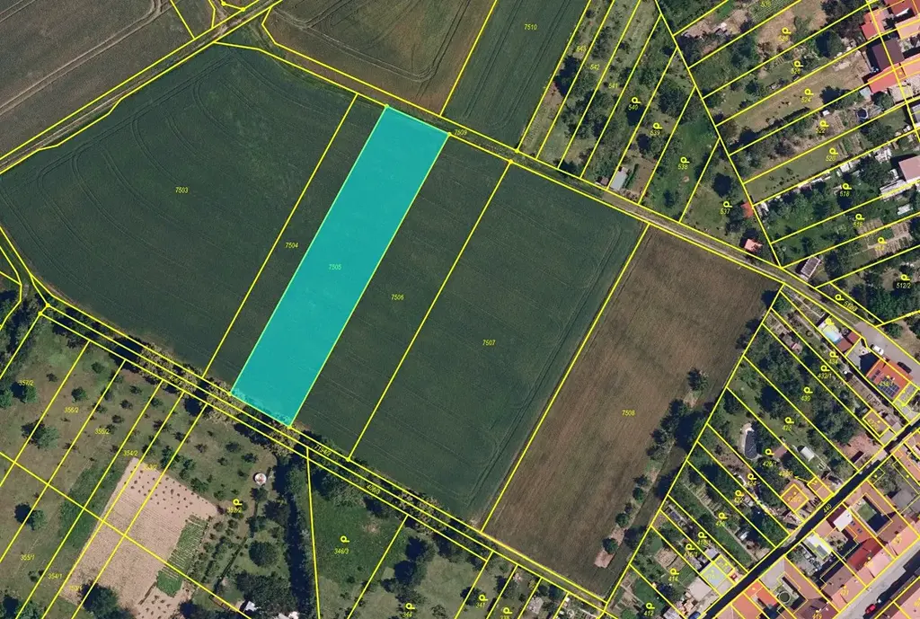 • Dlouhodobý potenciál: Aktuálně je pozemek veden jako orná půda mimo územní plán, ale jeho poloha z něj činí strategickou plochu pro budoucí rozvoj obce.