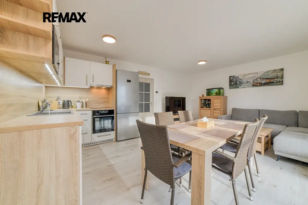 Celý projekt byl od počátku byl navržen s důrazem na nízkoenergetické řešení, které splňuje současné nároky na úsporné a moderní bydlení a zajišťuje komfortní vnitřní prostředí po celý rok. Dispozice 4+kk je promyšleně řešena ve dvou podlažích, což nabízí dostatek prostoru i soukromí pro všechny členy domácnosti. Dominantou bytu je světlý obývací pokoj s kuchyňským koutem a přímým vstupem na prostornou terasu, ideální pro relaxaci i posezení s rodinou či přáteli. Velkou výhodou je samostatný vstup do každého z pokojů což zajišťuje náležité soukromí i pro vícečlennou rodinu. Dispozice bytu je prakticky řešena na vstupní chodbu, schodiště, chodbu, koupelnu s toaletou, další samostatnou toaletu, obývací pokoj s kuchyňským koutem, 2 pokoje a ložnici, k bytu i náleží i komora která může posloužit například jako úložný prostor nebo jako místo pro parkování kola či motorky. Vytápění je zde řešeno pomocí plynového kotle, jako topné těleso v bytě slouží radiátory a v obývacím pokoji je zabudováno i podlahové topení.