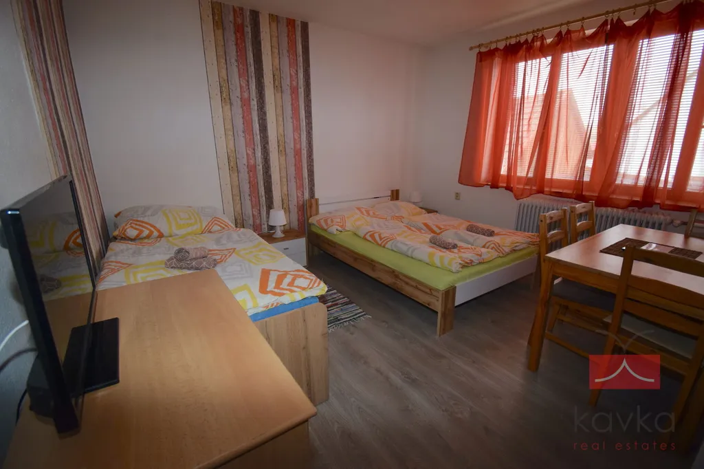 KAVKA REAL ESTATES Vám exkluzivně zprostředkují k prodeji ubytovací zařízení s 18 apartmány (vlastním sociálním zázemím a kuchyňkou), umístěných ve třech samostatně stojících objektech o celkové obytné ploše 685,2 m2 a užitné ploše 987,7 m2 na pozemku o celkové výměře 3022 m2 v klidné lokalitě obce Oudoleň, okres Havlíčkův Brod. Další apartmán 3+kk (možnost rozdělit na dva apartmány 1+kk) včetně zázemí je momentálně v rekonstrukci. Celkem tedy bude 19 apartmánů.